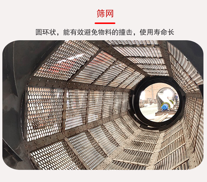 3,GTS滾筒篩篩網是圓環(huán)狀,能有效避免物料的撞擊,使用壽命長。