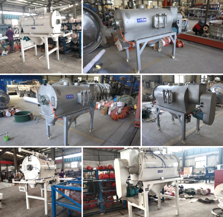 收集和排出:經(jīng)過篩分后,較輕的物料會被氣流帶到集塵器或排氣口進(jìn)行收集或排出,而較重的物料則會通過篩網(wǎng)或設(shè)備底部的出料口排出。
