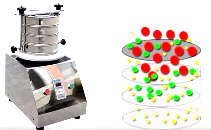 篩分過程:顆粒在振動作用下通過篩網(wǎng),根據(jù)顆粒大小分為不同粒度級別,小顆粒通過篩孔落入下方容器,大顆粒留在篩網(wǎng)表面。